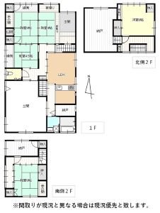 | 間取り | 5LDK+S | 設備等 | 上水:水道+井戸、下水:下水道、トイレ:1階洋式水洗、駐車場:無し |
