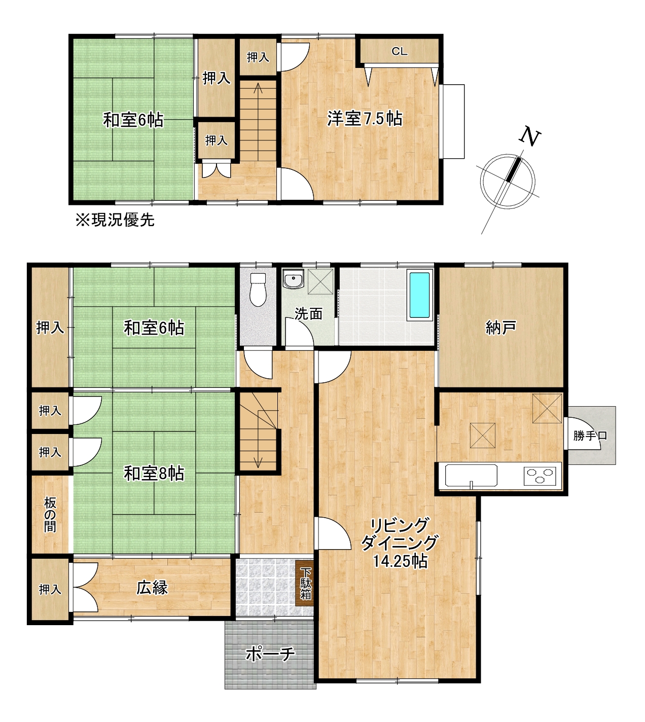 | 間取り | 4LDK+納戸 | 設備等 | 上水:水道、下水:下水道、ガス:プロパンガス、駐車場1台 |